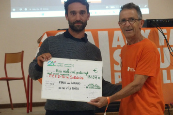 L’occasion le samedi soir de recevoir officiellement un chèque d’environ 3 200 € d’un vigneron de la Ferme des Arnaud à Villedieu, grâce à plus de 1200 bouteilles de vin Bio vendues pour la Cuvée Solidaire 2024.